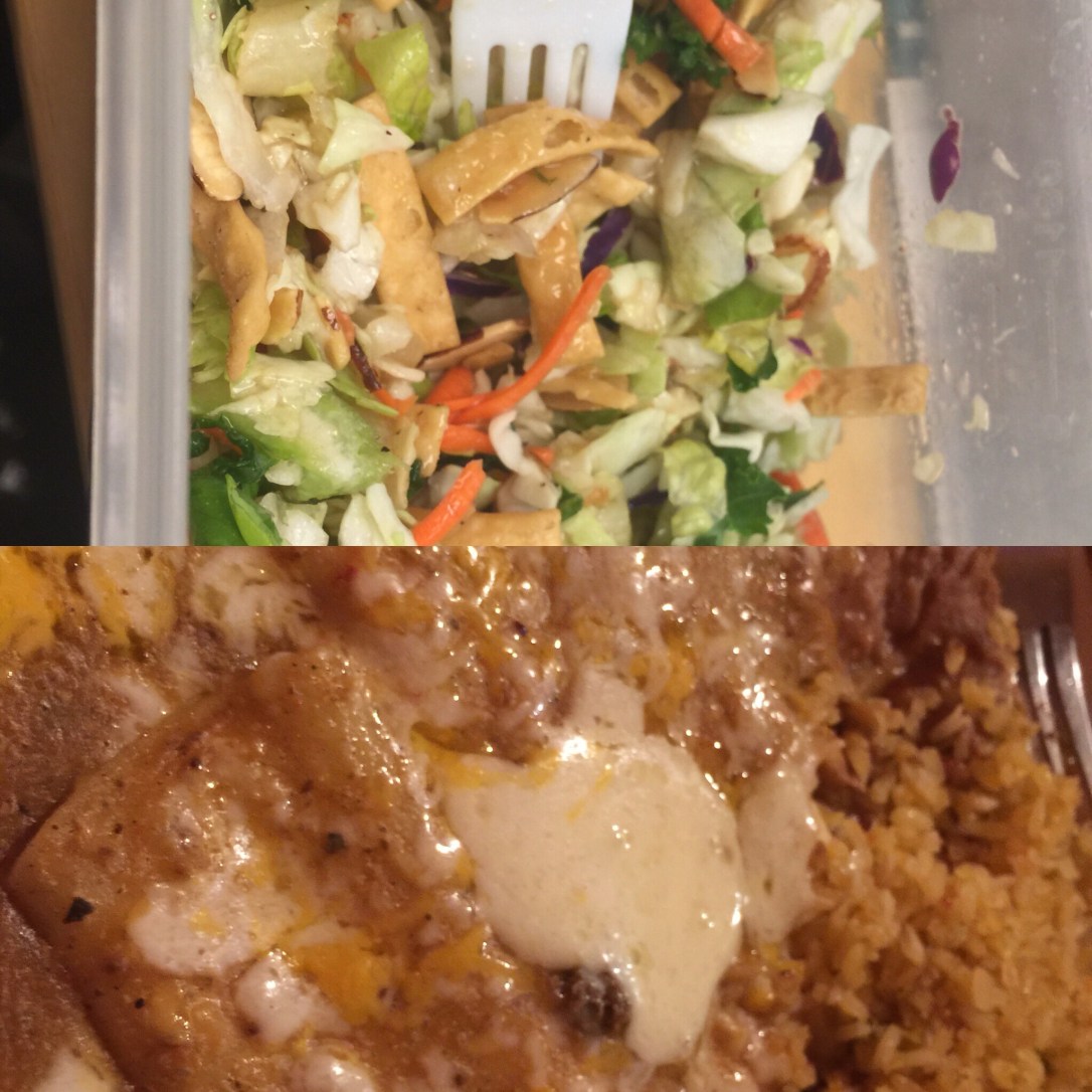 I had a salad for lunch. Then my husband took me on a date and we went out for Mexican food. I had a veggie enchilada… a little dairy, but what can you do?