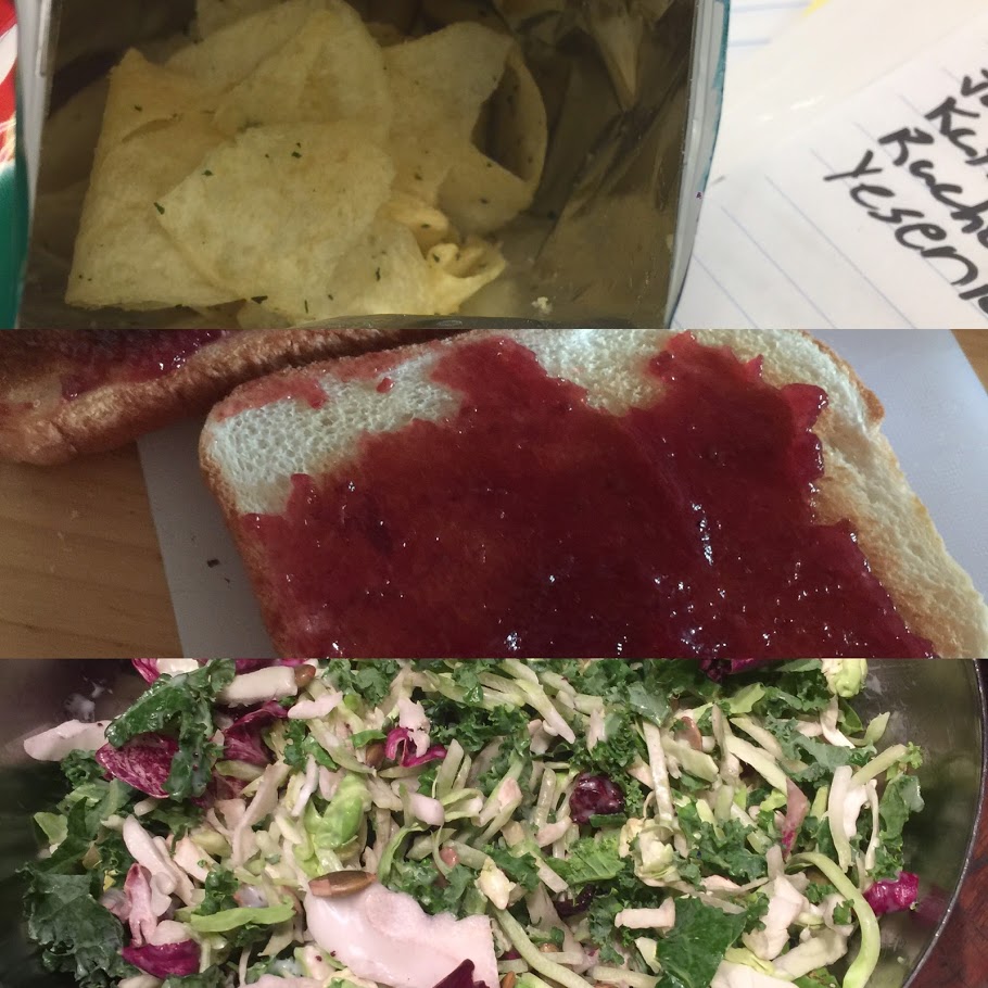 I still hadn’t really gone to the store on Tuesday. I ate sour cream and onion chips at school because that is all that I found. I know. Bad choice. I had a salad and toast with the last of the sugar free jam for dinner.