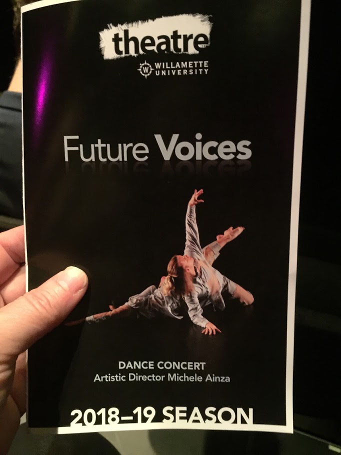 I took Lilli to see an interesting performance at Willamette University called Future Voices. It was loosely called a dance concert. It was more like devised theatre. Still, it was a good experience.