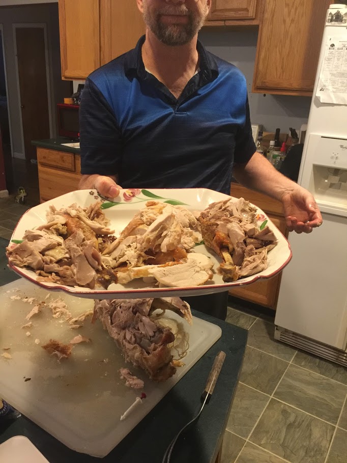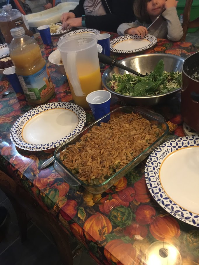 I did not feel good on Thursday. Still… I got up and made food. John helped me, thankfully. We made a traditional meal for the family – turkey, potatoes, gravy, green beans, salad, rolls, and stuffing – and we made some vegetarian things for me – sugar -free cranberry sauce, and mushroom Wellington. It was all very tasty. Before we ate, Ray and Kimber took the kids to the movies with his family. Chad and Lilli slept in. Chad also watched football… lots of football. Sadly, I only took pictures of food and not many of people. oops.