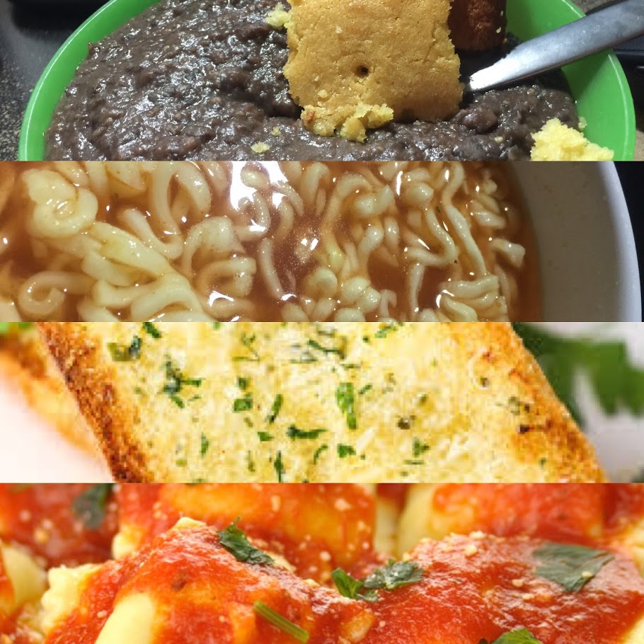 Monday I ate some of the left over black bean soup that is more like dip with some chips. I also ate a cup of ramen, a few ravioli and a piece of garlic bread.