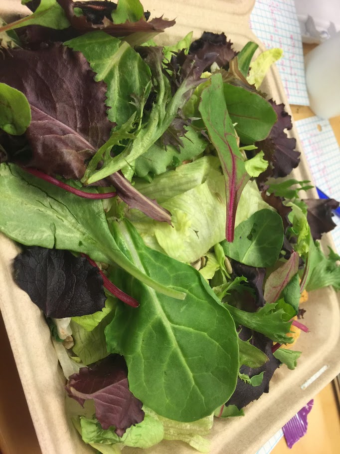 On Wednesday I tried to eat a salad for lunch. I found some greens, added olives and sunflower seeds. It was plain but it was okay. I also ate a fiber bar. I worked that evening so I only had time to stop and get a veggie burger and fries from a local restaurant. I know. Not good. But I had to eat something.