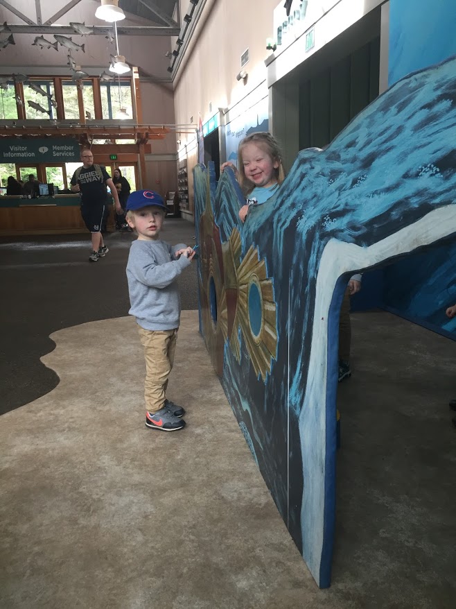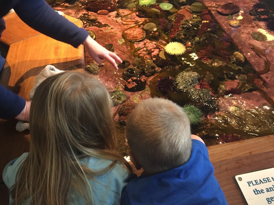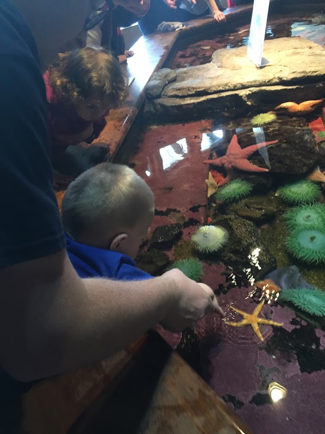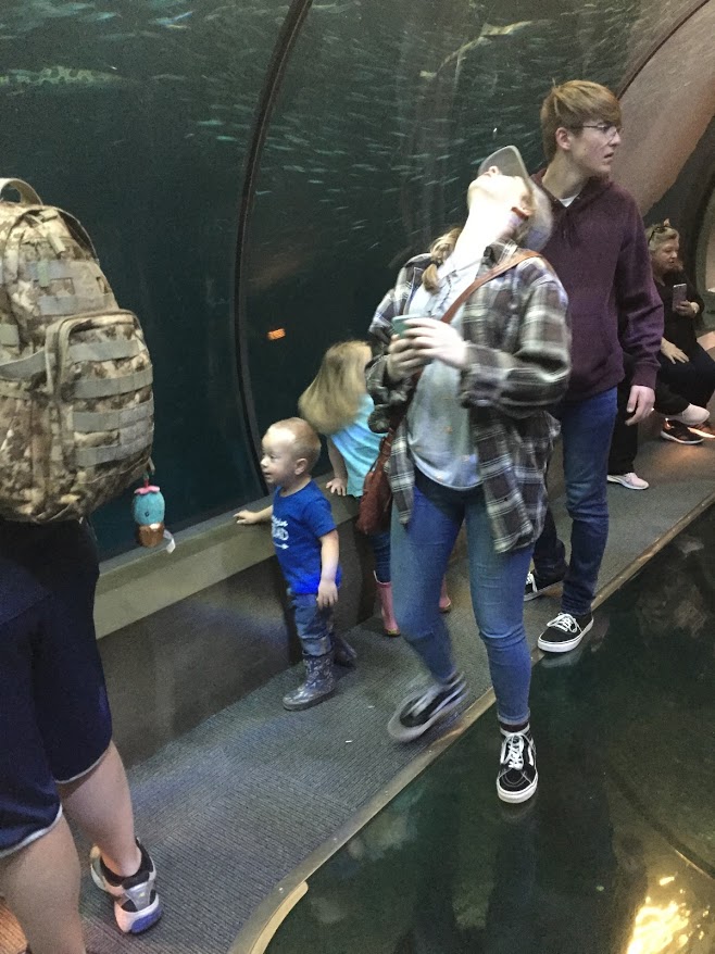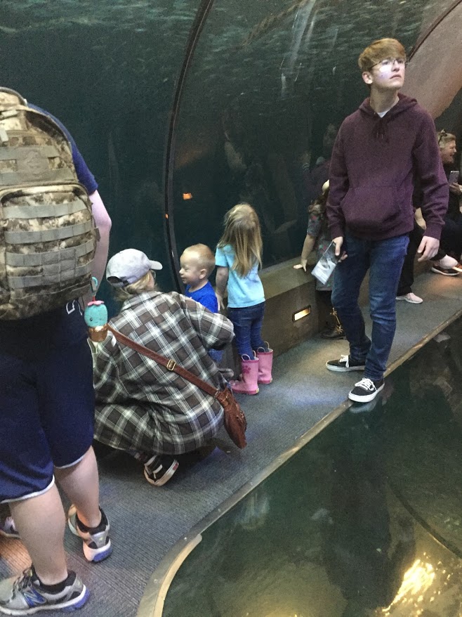 I also took people to the coast and the Aquarium. I invited Kimber’s family too, but they had the Pinewood Derby to go to. John decided to stay home too, to help John Hatch. It was Kaiden, Beckett, and Tatum’s first time to the ocean. I think they all liked it. I ended up buying a family pass, so we will go again a couple more times in the next 12 months. I walked into the ocean with Lenayah and Beckett. Lenayah liked it and was sad we stopped. Beckett wasn’t too sure. Kaiden sat on the beach and laughed. It will be fun to go again when it is warm and they can play more.