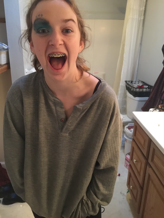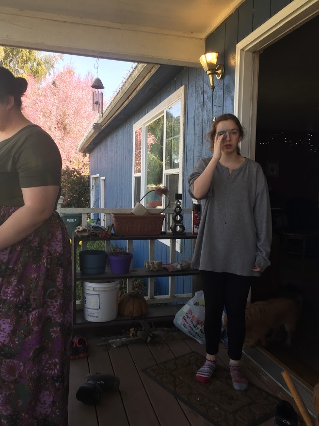Lilli was also a model for me as I tried to teach Janey about how to do some eye makeup she wants to do for her play at her church. I taught her how to take out an eyebrow with some glue and the makeup and how to make the shape she was hoping for. It didn’t turn out like it should because I only have old crap makeup at home.