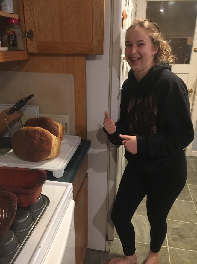 I also taught her how to make bread this afternoon. We have been studying about “leavening ” (the parable of leavening) and in this coming week we will be talking about the Bread of Life in family scripture study. I thought it would be a good activity to help discuss what leavening is and how it works and what it does in bread. Her bread turned out real good too! It did the trick. It was fun to talk about spiritual stuff while learning a practical skill.
