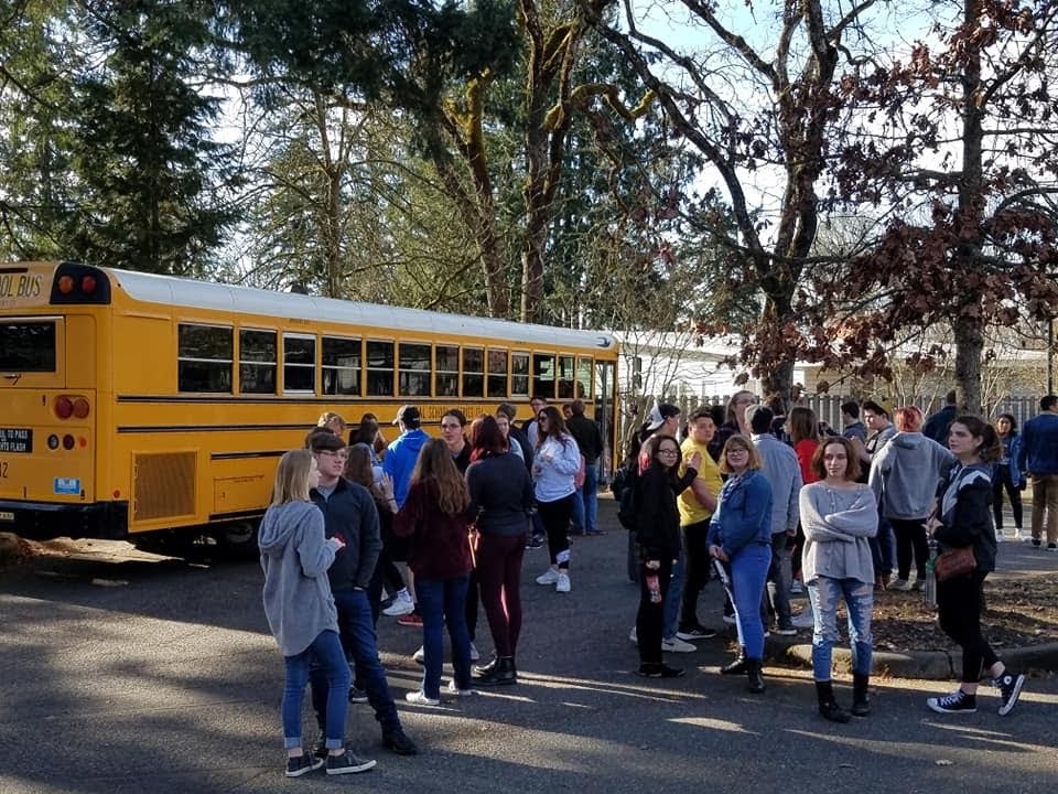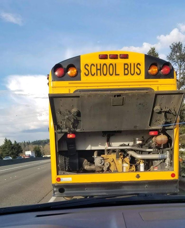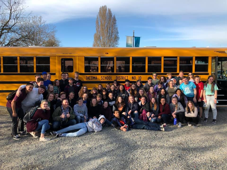 After that clinic, they headed north again… until the bus broke down. They sat on the freeway for a long time with a police officer behind them to get people to slow down, while they waited for the first bus to get to the hotel, drop people off, and come back. They were pretty luck because the Tacoma School district loaned them a bus and fixed their broken bus.
