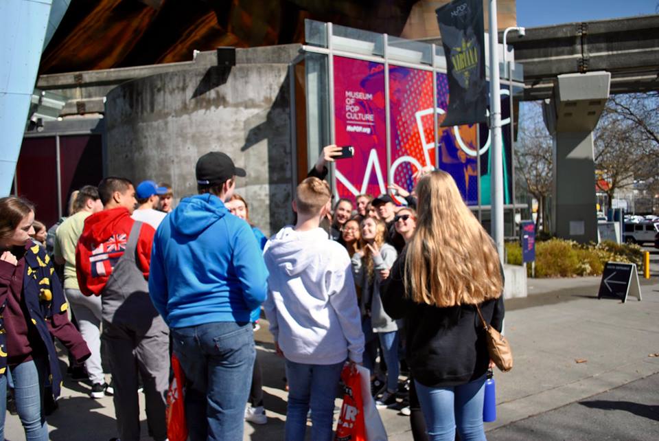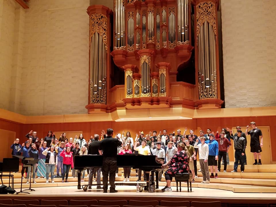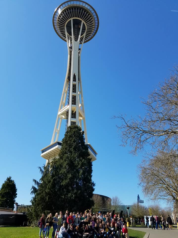 Then they headed north. They stopped in Vancouver, Washington for lunch and headed to Pacific Lutheran University for a clinic. It was a super cool looking building. A couple of mom’s on the trip posted video. I have no idea how to save Facebook videos so I don’t have anything saved for posterity to listen to. What I can say is that they sounded cool in that space and that the professor helping them had some fun ideas on how to help them. I really liked when he got them to dance.