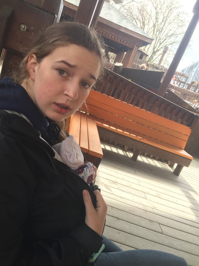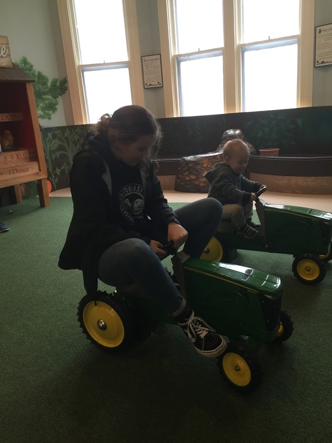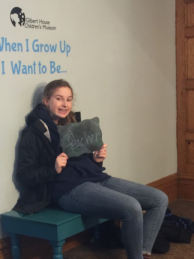 Lilli and I found a “When I grow up” picture stand. She may have said teacher, but I think she meant “mom.” Look how comfortable she is snuggling that baby! We had a small lunch there… crackers and cheese and turkey (not me – I ad crackers and cheese and half of Lenayah’s orange) and we waved at the bridge when Ethan said he was driving by on his way home from Central Oregon. After the Gilbert House, dad, Lilli and I went and got Ethan and went to a “chick flick.” Lilli is a major romantic. She was totally “ugly crying” in the end. Ethan is cool and knows just how to handle that hot mess. LOL.