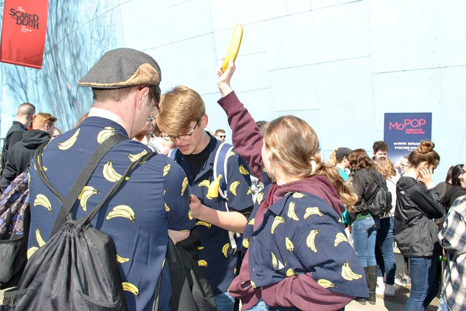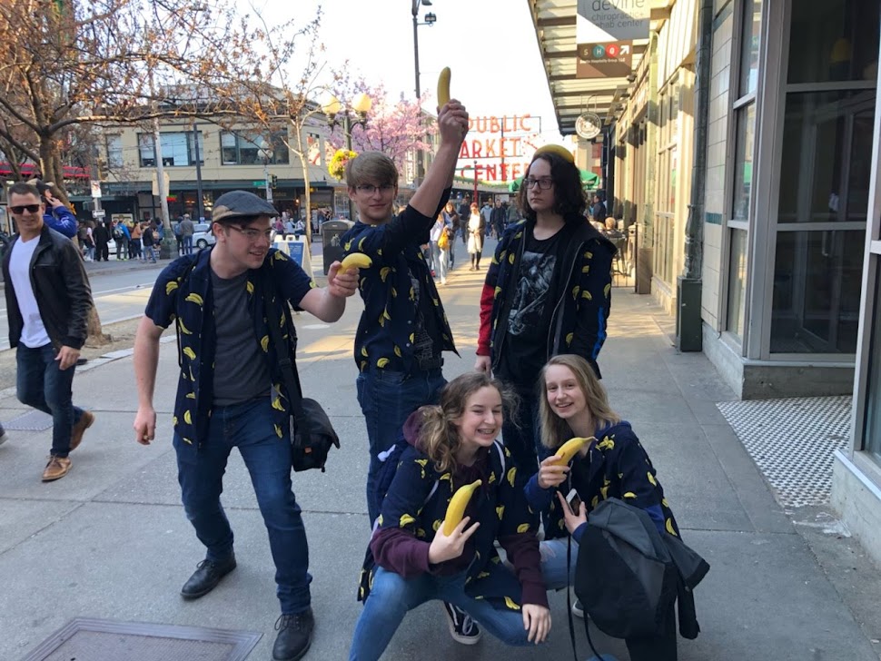 Saturday, Lilli and friends went shopping. They went to Pike Street Market, the Space Needle (although they didn’t go up because no one wanted to spend the money), the Pop Art Museum. They were in target and saw banana shirts and decided to get them. At the check out stand they saw bananas and got them too. For the rest of the day it was real easy to see where everyone in the group was. Fun way to do roll call, I think.