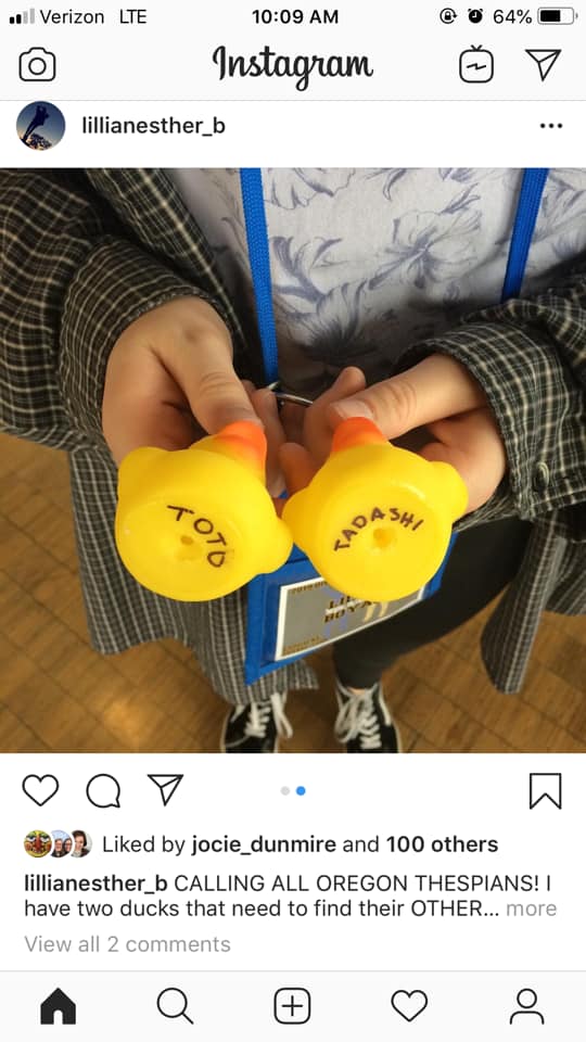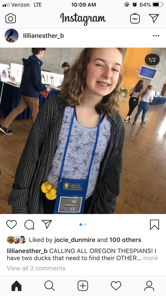 The last part of the week Lilli and I were at the State Thespian Conference. Day One I judged Stage Management. Lilli and friends competed in the Large Group Musical Auditions and Zach, one of my vocal students was in Solo Musical Auditions. The first night we all watched “… Spelling Bee…” It was a cute little show. I had lots of memories of taking Hannah to see Jeff in that show at Pentacle Theatre and being “called” up on stage as a “participant.” Day Two we went to some workshops. I went to a great workshop on movement and a workshop on subtext with Lilli and Ethan. I learned some good things that I hope will make me a better teacher. We also saw “She Kills Monsters” and “Mamma Mia.” The “Mamma Mia” we saw was different than our “Mamma Mia,” but I think they did a great job. It was super fun that that school sat next to us in the theatre and the kids all got excited sharing who was who and cheering them on. In fact, the best part of the whole conference was just how genuine, kind, supportive, and engaged the whole group of kids we took were this year. It was so refreshing! Day Three was more workshops and I visited all the booths for colleges, bought a teaching design curriculum, bought some souvenirs, and supported kids. I really loved their “getting to know you” game they played. It was also a fund raiser. You could buy a duck and then you ran around looking for your matching duck and posting pictures on social media if you found your match. Lilli and Ethan on found the match for one of their ducks. Jeff was the typical drama teacher and did the drama teacher flash move dance. He also got himself elected to the State Thespian Educator’s Board.