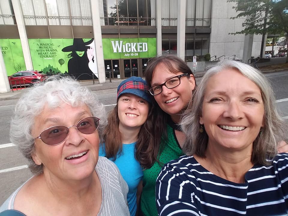 I went to see Wicked in Portland with these goofballs. They all met me there. I came in about 12 minutes into the show. I actually entered the building just seconds before the show started, but I had to go up the elevator and had to wait. I knew I was cutting it close when I left home, but then the drive was crazy and I was definitely driving with a little borrowed time. I narrowly escaped a car wreck. Seriously. Cars were skidding all around me I saw at least 8 of them hit each other and go to the side of the road. It was super scary. I had to leave right after the show because I needed to get back to Salem. Hannah was singing in her first performance since her mission. I didn’t want to miss that. I did, however, miss the group picture.