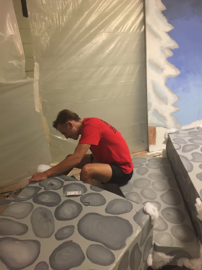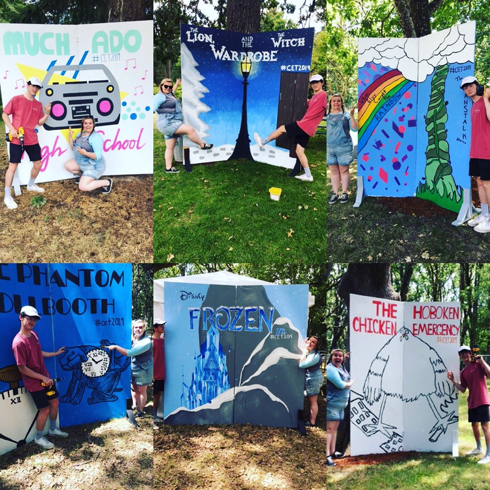 I worked on the sets and where needed, the lights, for several productions: The Phantom Toll Booth (mentioned above), Much Ado High School (a level 7 show that the kids do most of the work and I am assigned to crack the whip), The Lion With and the Wardrobe at the Salem Public Library, The Hoboken Chicken Emergency (a show that travels to several venues), Jack and the Beanstalk and When You Catch the Rainbow (two elementary school age one-acts), and Frozen, the Musical on the main stage. I am also responsible for organizing all things tech, and managing the kids who are in the tech program. It’s a lot of stress… long hours… and sometimes, quite overwhelming. This year we didn’t have as enough parent volunteers. We didn’t have parents with trucks to move the traveling sets and I ended up driving sets to and from their locations. Nearly ever day met me with a new problem to work out.