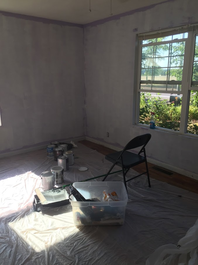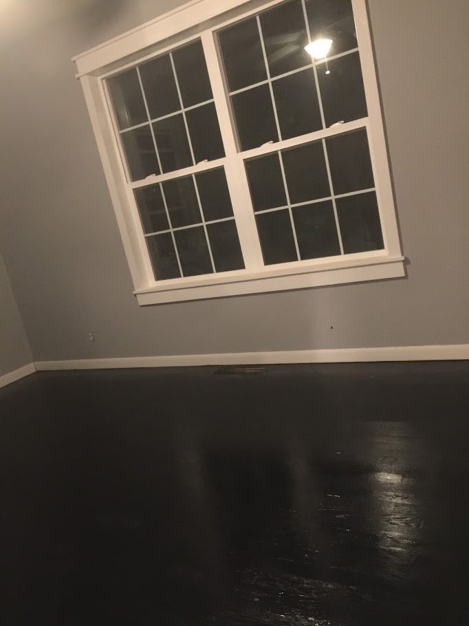 We finished remodeling and updating Hannah’s room and the bathroom. I’ve been wanting to make a cleaner, simpler look in our home decor. I had John help me wrap the windows with wood trim for a farm/country look, painted the walls gray, and the floor black. John resisted the black floor at first, but I love how it turned out! Then we started making the bedroom at the front of the house into a office. I want the office out of my bedroom. We did the same thing to the windows in the office. Oh! And we got cool fancy window blinds too. We painted the walls gray and the floor black. By now, John is convinced that the black floor is pretty cool.