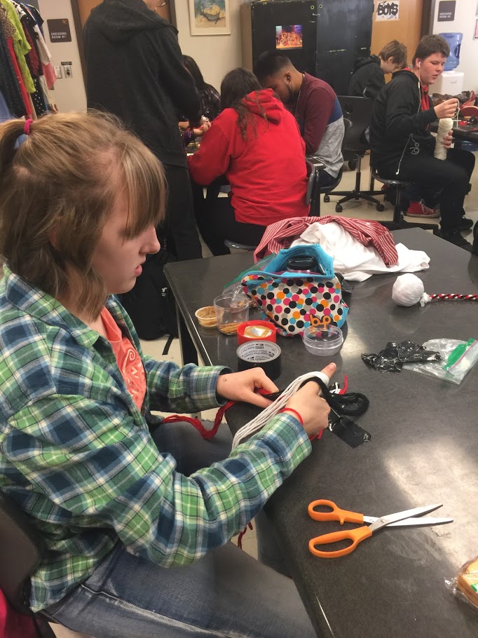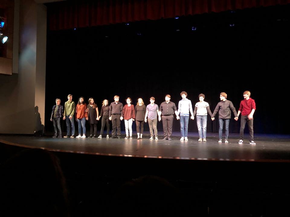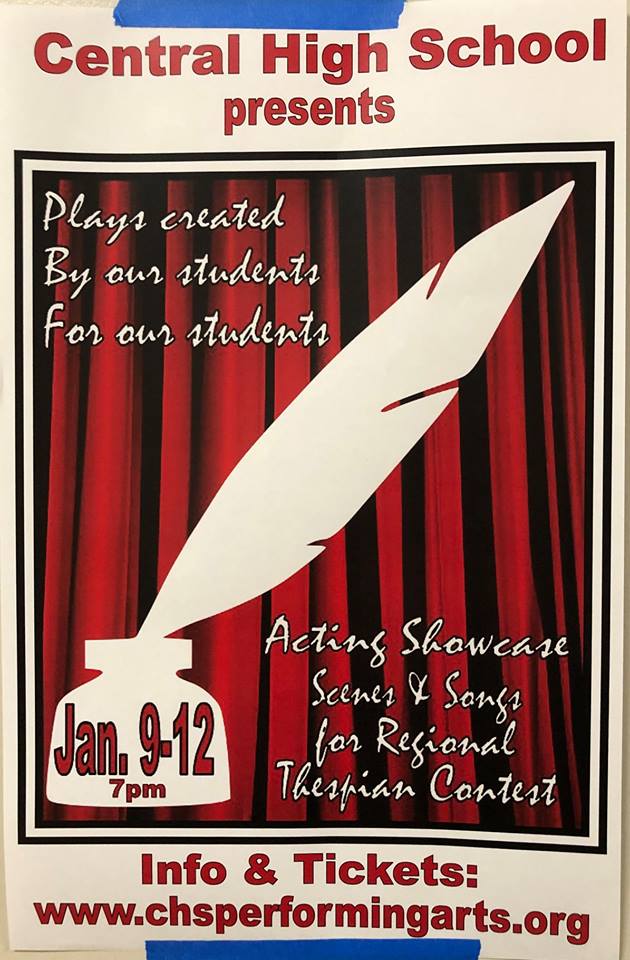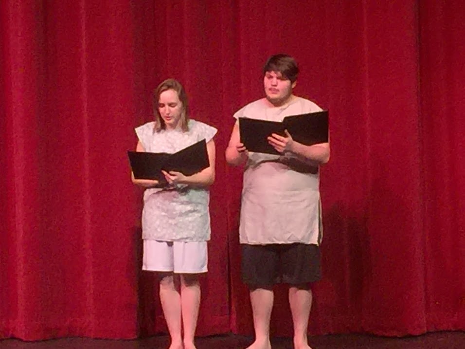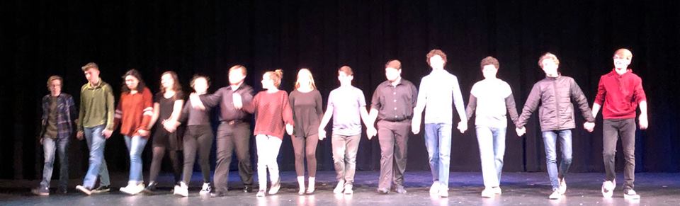 The Production Workshop class tried something new this year as well. I loved my experience in college with my Playwright, Director, Actor class. I saw several student written plays in the one-act festival at state that I had the privileged of judging the past spring. It got me thinking. I thought it would be perfect if I could get the kids to do a student written play. So, I approached the Creative Writing teacher at school and asked if he would be willing to add a play writing unit to his creative writing class. He was game. His classes produced 4 different plays. Our class read them and chose two of them to produce for our One-Act Festival. I loved the experience. I think the kids learned a ton about what makes a good play through the experience. The English teacher and I agreed that it would be great to try it again and we decided that we do this joint project every other year.