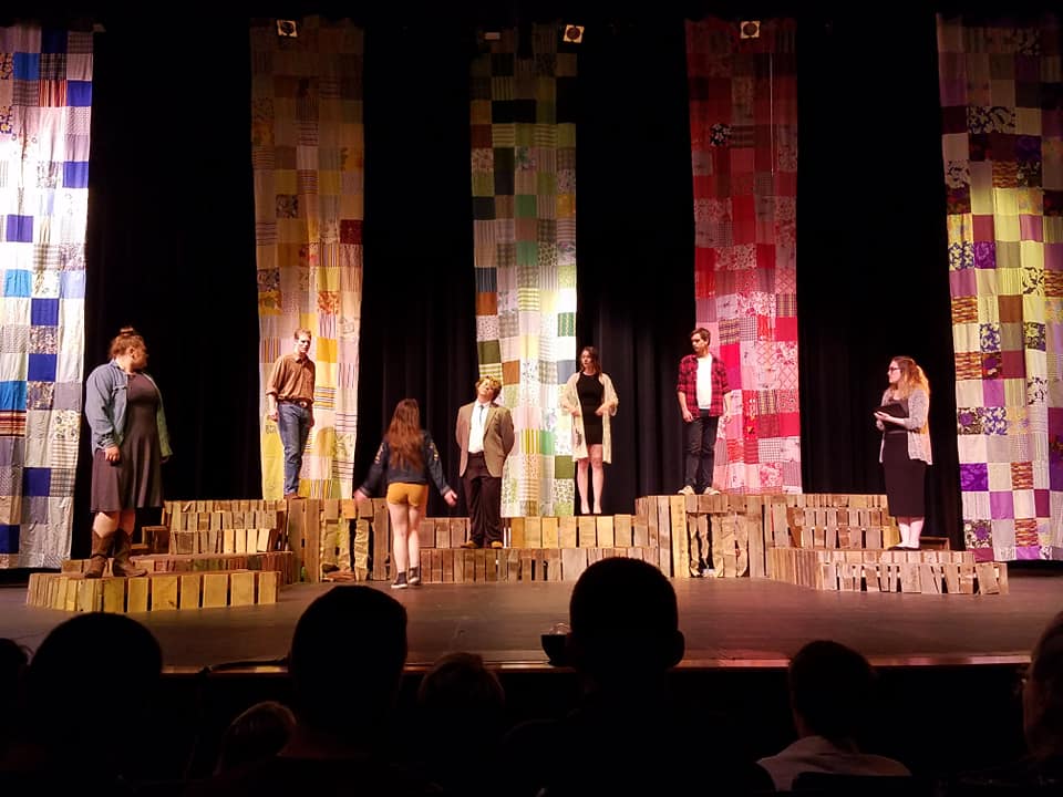Although I was not involved in the process until that final four days of getting together for the first time to striking the show, I was exhausted (especially since I drove home that night through a terrible storm and didn’t get home until 3am). I can’t say I’d like to see us do this kind of project again. But I will say it seemed to be somewhat of a good learning experience for the students. I think they learned to appreciate the programs that they all come from. I think they learned a little about learning how to work with other directors who are not their regular directors. I think they learned a little about the different cultures of different schools. I think they may have learned a little about acting by watching the actors of other schools working with their directors. I know I learned a couple of things watching how these directors interacted with their students and with each other.