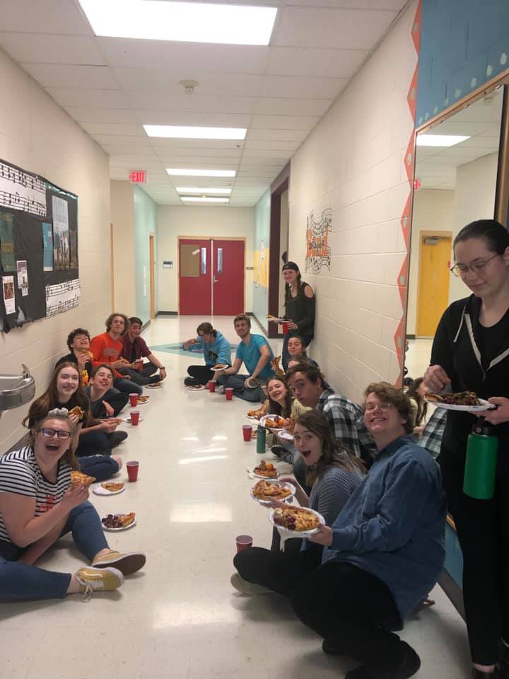 He ask one of our English teachers to take on the role as director for our part of the production. I was left out of all the talk until the day they all got together (my schedule was hopping busy!). The casts and crews from the three schools met for the first time the day before the first performance at Dallas High School. They spent a few hours getting to know each other, learning a dance, and touring a couple local theaters.