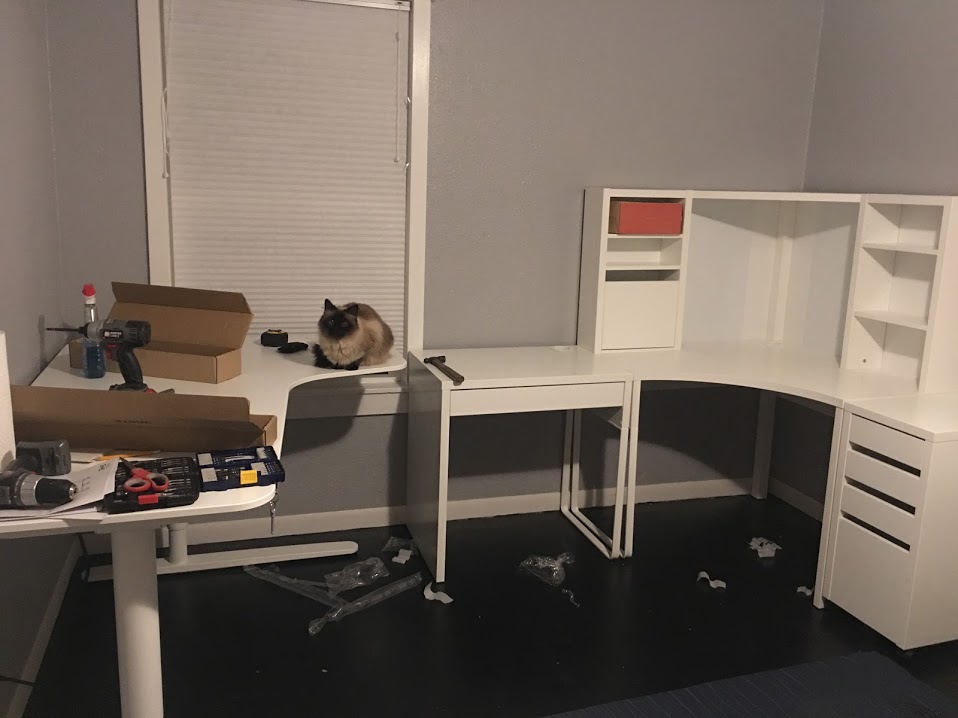 I also made this bench for McKay for her birthday. It is still waiting to be painted. Maybe I will get to it this week. John and I also finished fixing up one of the front bedrooms to make and office. Let me tell you, it is so nice to have all the computers and such out of the bedroom! Plus, I have a huge desk space now… and my desk moves up and down so I can stand and work or sit and work, depending on my mood.