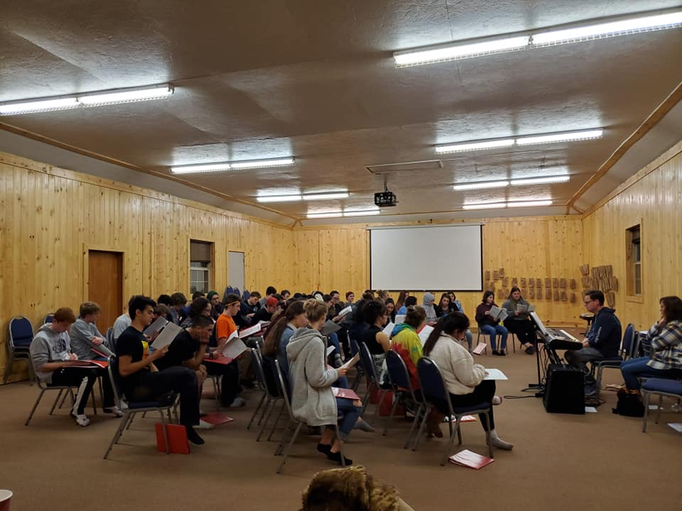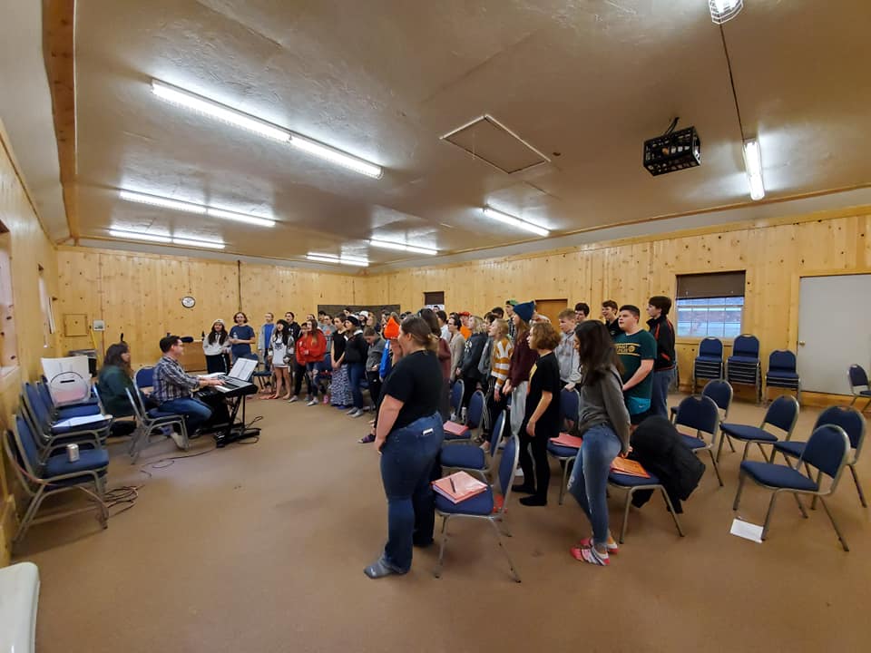 Lilli and Hannah spent time with the choir at a choir retreat. Hannah helped to teach the music. Lilli learned the music.