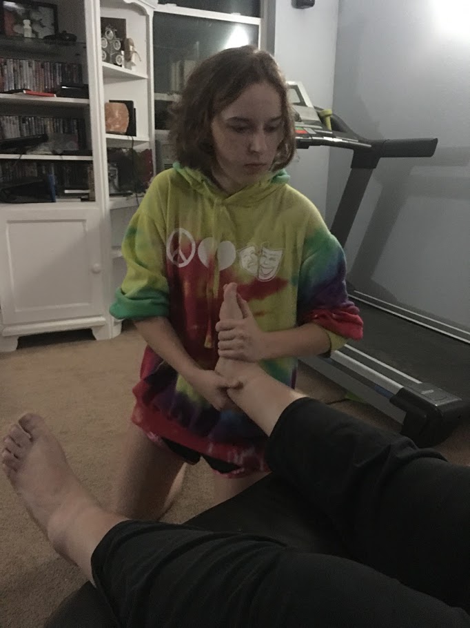 Over at our house… Hannah finished her application to BYU. Now we wait to see what happens. My hair is getting long. Lilli is getting good at adjusting my feet. I went out to McMinville to help my friend Dani with her lighting and sound problems. John and I finished the office and have mostly moved in. I keep teaching theatre classes. I started a scenic painting unit in my tech theatre class and we finished off the dance unit in my World Theatre classes. I also worked on a couple of special events in the auditorium. We are now in concert season. So far we have hosted two different elementary school music concerts. Those little kids are super cute and always crack me up… including the puddle of pee on the floor.