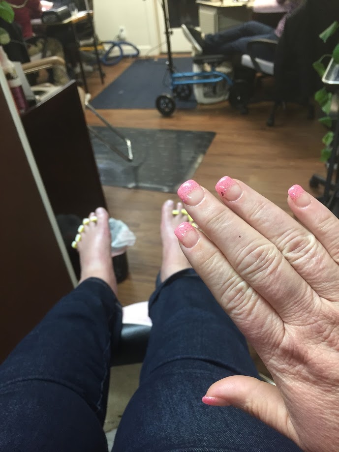 John took me to get mani/pedis for an anniversary date. We decided to try gel nails with me. My natural nails are super thin and week. The nice nail lady said that gel nails might help my nails feel stronger. They actually do. I am having a little trouble getting used to having them longer than I am used to, but I really like them. If there was one thing I might be tempted to be vain about, it would be pretty nails. It’s the one thing that I feel pretty about… pretty hands. I’m not one to like wearing makeup or spending time on hair… but pretty nails. I like that.