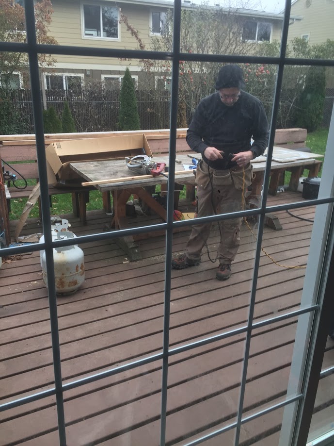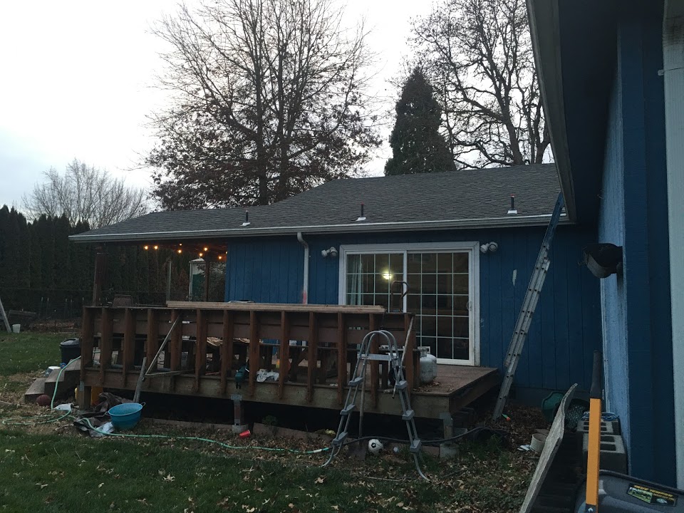 John took the week off and did some chores. He started the editing of the musical so we can make dvds for all the kids involved. He started the things we need to do to build a roof over the deck. That involved cutting holes in the roof and securing these special jacks to hold up the future roof. It made him rather nervous. He didn’t want the roof leaking because of this new addition to house structure.