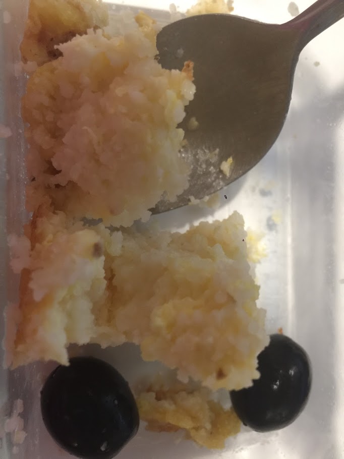 Wednesday I ate leftover polenta and a couple black olives for breakfast. I ate a protein shake and a protein bar for lunch. Around rehearsal I was very hungry. My stomach even hurt a little. I ate a hand full of peanut butter pretzels. I was working when it was time for dinner, but I brought some leftover wild rice and veggies for dinner.