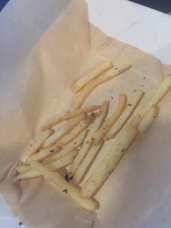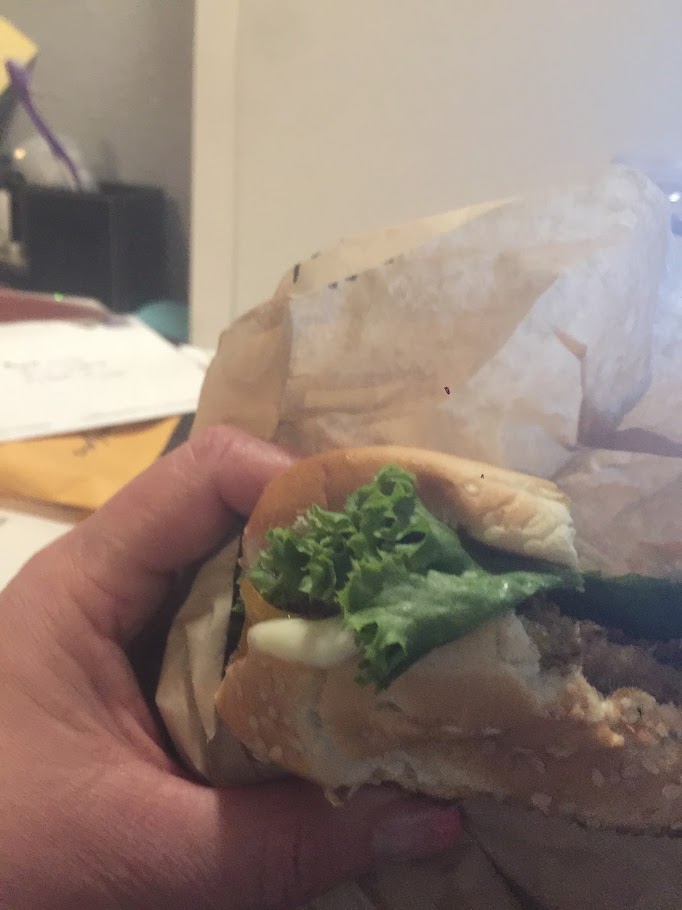 Friday I had to work a long day as well. John took pity on my and went to the store and got lots of walk around foods. For breakfast he made me a bagel with cream cheese. I had a few grapes, some triscuts with sliced cheese, and a protein bar. When I got home John had a small order of shoestring fries and a veggie burger from Burgerville. That guy is a keeper.