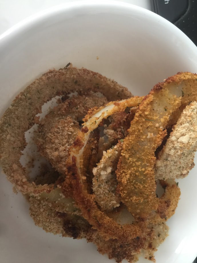 Today I am grateful for a delicious new salad, homemade kale chips, and homemade onion rings.
