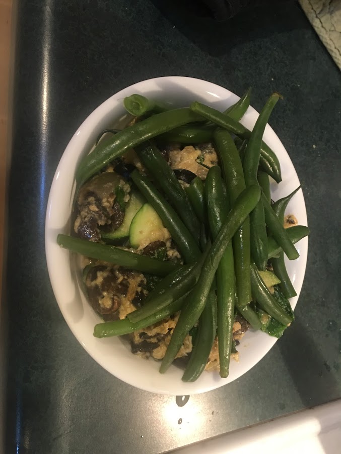 Today I am grateful for the eggs with spinach, zucchini, mushrooms and onions and garden green beans we had for dinner and a slice of Swiss cheese.