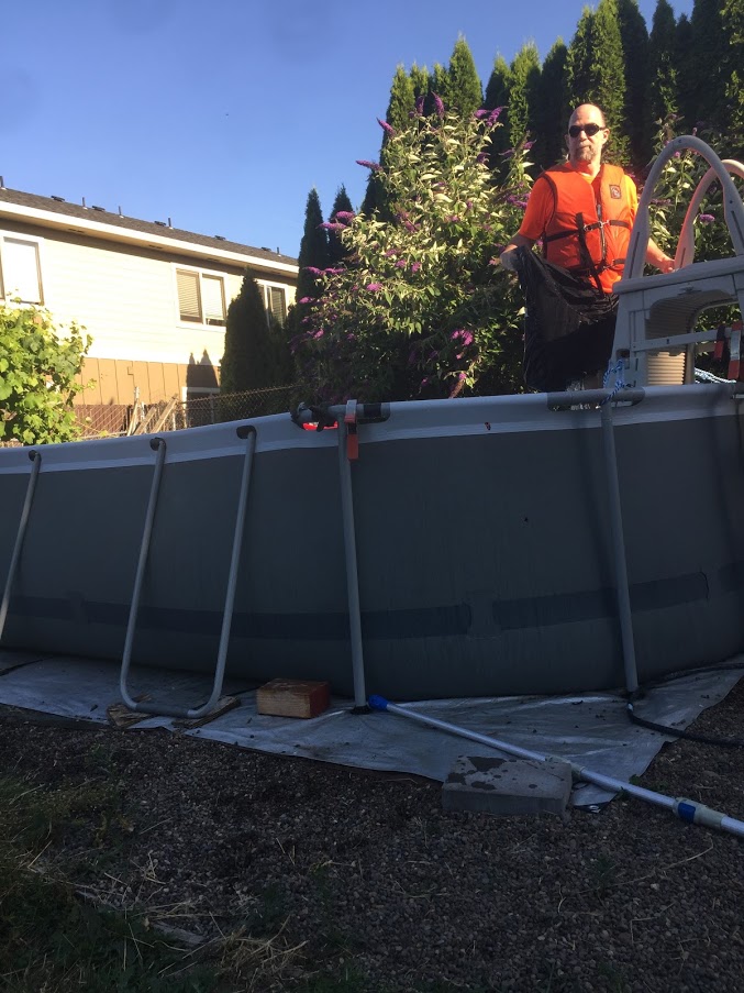 Today I am thankful for John and that he entertains me. Today he mowed the lawn and did little things around the yard. This evening he decided to practice flipping his kayak in the backyard pool. He isn’t a swimmer, so I sat next to the pool filming him and making sure he wasn’t going to stay under the water when he flipped himself over. I am grateful he didn’t drown and I am grateful he provided the evenings entertainment.