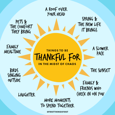 Today I am thankful for all of the things pictured in the picture… Cat, my house, flowers budding in my yard, time to sew after school, the awesome sunrise and sunset for the second day in a row, family and friends, time chatting with Riley, thing that make me smile, my wind chimes, good food and fasting…