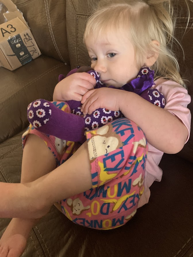 Today I am grateful that the people I love who I sent a distance hug through a hugging bear from Lilli and my business Give-A-Hug Bears, loved their bears. Fetu and Lagi called me to thank me. I should of snapped a picture. McKay sent me this picture of Tatum all dressed up in the pj pants I made her and the t-shirt I sent snuggling the bear I made her for her birthday.