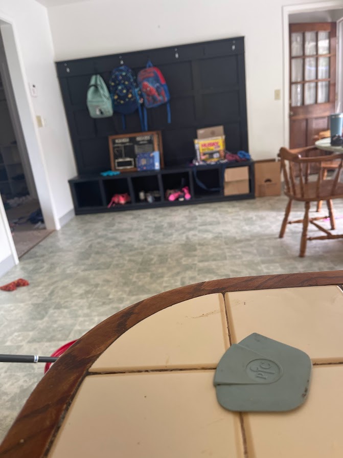 I also helped her clean up her kitchen and set up the coat organizer thing I built her a few years ago.