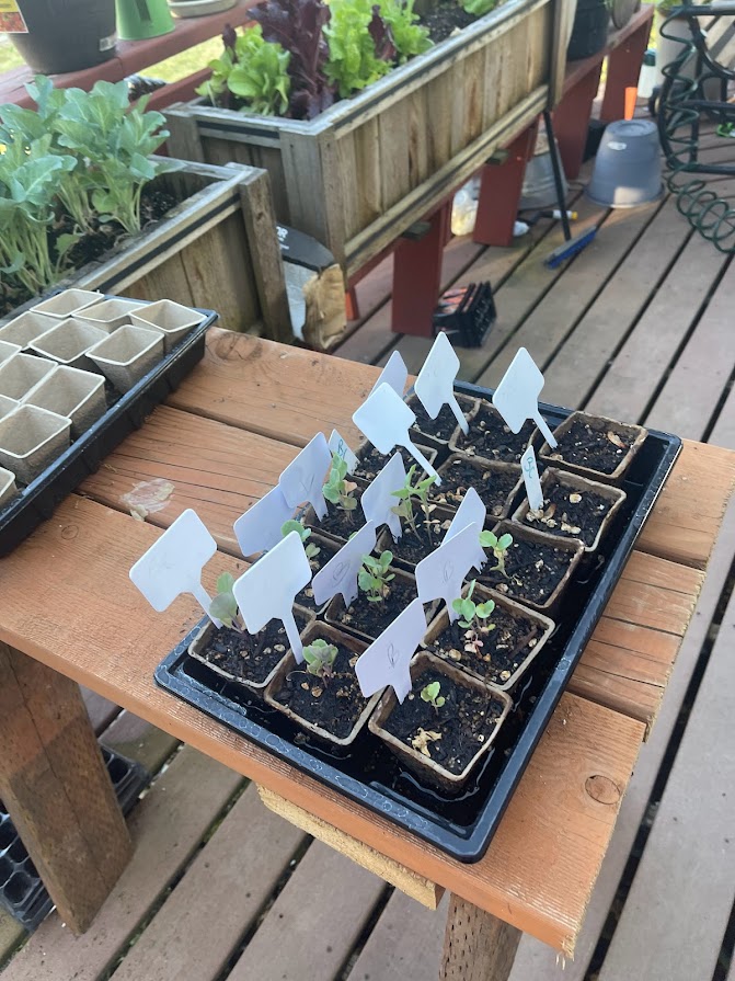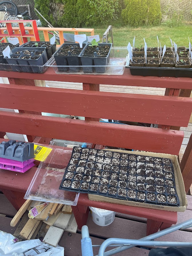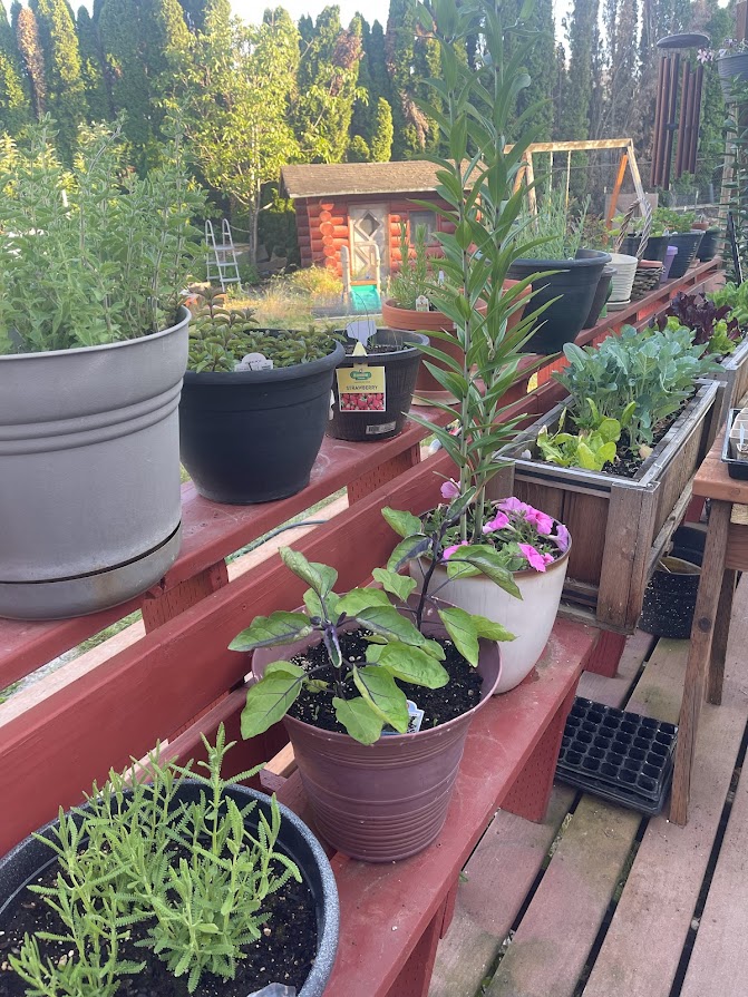 I have to take it slow, but I have kept myself busy, mostly in the garden. I have started most of my plants in little seed pots on my porch. I have plants in pots on my porch. It’s fun to walk out and cut some lettuce off for a sandwich or to snip a few fresh herbs for something I am cooking. So far in my porch garden I have lavender, thyme, oregano, cilantro, basil, chocolate mint, spearmint, chives, eggplant, lettuce, broccoli and a few flowers for good measure. I’ve started lots of seedlings – all perennials and fruits and vegetables. So far I’ve successful started 5 different kinds of lettuce, cabbage, red cabbage, Chinese cabbage, Brussel’s sprouts, bok choy, broccoli, cauliflower, yellow watermelon, crimson watermelon, mouse melon, honeydew melon, cantaloupe, beets, radishes, tomatoes, and spinach. I planted my tomatoes in pots and I’m trying my hand at potatoes in grow bags. I started onions, garlic, peppers, broccoli, and kale in my raised beds. John transplanted all the strawberry shoots and I add asparagus because I read that they grow well together. We had blue berry bushes in the same bed and they are doing well this year. This weekend I will transplant cucumber and plant zucchini, acorn squash, yellow summer squash, green beans, peas, butternut squash, carrots, and more spinach. It doesn’t look like much now, but I am hopeful. At least I have the beginning of a great tan. LOL.