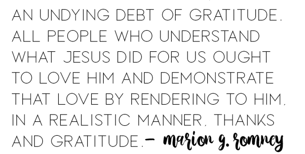 Today I am grateful for the moments I gave myself to read the scriptures this morning before work. It was good to be reminded that every single person is called to share the gospel message of Jesus Christ. We are each called to teach repentance, returning, and unity with God. As we do so, we… Continue reading An Attitude of Gratitude Experiment 2.0 Day 139