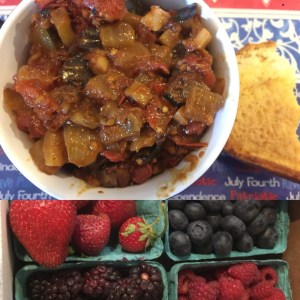 Wrapping up August in fresh veggies - It is great to live in a beautiful place where many things grow. This week we enjoyed fresh plums, peaches, watermelon, cantaloupe, cucumbers, tomatoes, corn, zucchini, yellow summer squash, onions, green beans, raspberries and strawberries. I didn’t really make “recipes” for meals. Some meals were just 1/2 a cantaloupe and a spoon. 🙂 Other meals… Continue reading Wrapping up August in fresh veggies