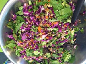 Wendy’s Chopped Detox Salad - Ingredients 2 c mixed greens, chopped 2 c broccoli, chopped 2 c red cabbage, chopped 1 c carrots, finely chopped 1/2 c almonds, chopped 1/4 c sunflower seeds