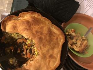 Veggie Pot Pie - I like this easy recipe. I can prep it on a Saturday, put it in the refrigerator, and drop it in a crock pot or dutch oven later in the week. Ingredients 6-7 c bite size veggies (I use Brussels sprouts, frozen corn, frozen peas, potatoes, carrots, and pre-sliced mushrooms) 1 onion, diced 4 cloves… Continue reading Veggie Pot Pie