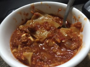 Lasagna Soup - This is a tasty, quick soup for one of those busy days! Ingredients 1 c chopped onion 1/2 (11 oz) pkg veggie protein crumbles (I use Morningstar brand) 2 cloves garlic 1/2 Tbs Italian seasoning